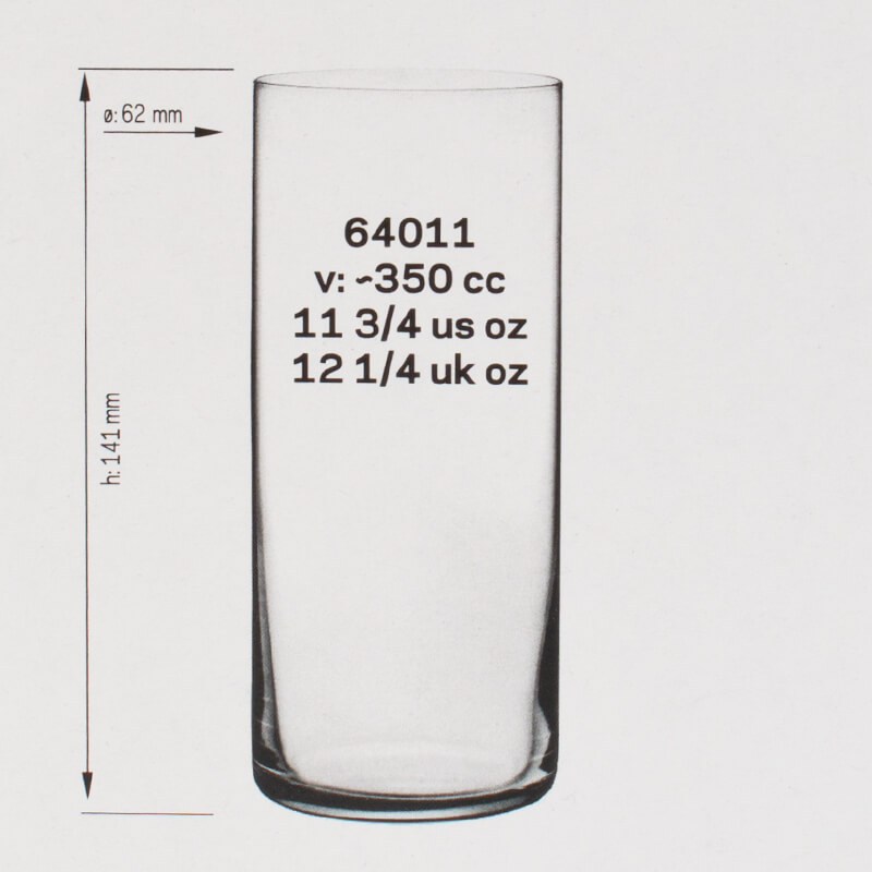 1Remarque : Le « volume total » indiqué (également appelé capacité brute) d’un verre désigne la quantité maximale de liquide pouvant être contenue jusqu’au bord. En revanche, le « volume de remplissage » (également appelé volume utile ou volume de service) décrit la quantité réellement utilisable. Les deux valeurs sont indiquées en ml ou l. En raison des conditions de production, une tolérance de ±5 % peut survenir, ce qui correspond aux normes de l’industrie et ne constitue pas un défaut.